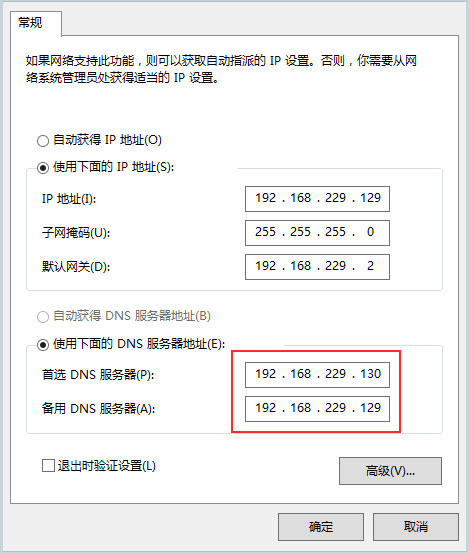 1.手动更改两台服务器的IP地址为静态IP地址,并且添加DNS的时候,要互为对指的方式添加。