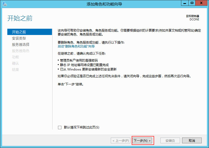 主AD的计算机名称为:DCONE 静态IP地址为:192.168.229.129/24