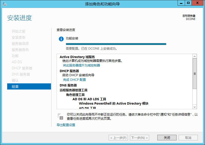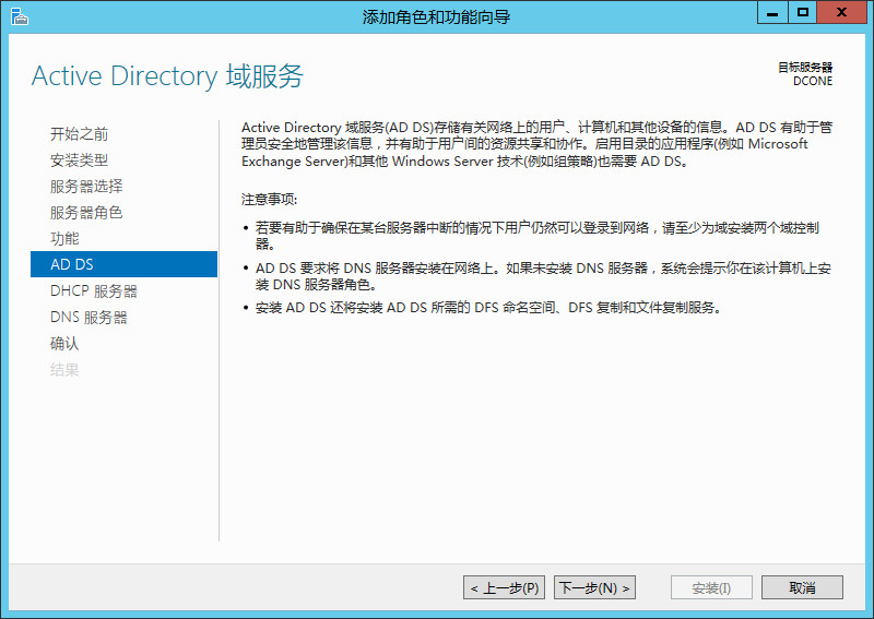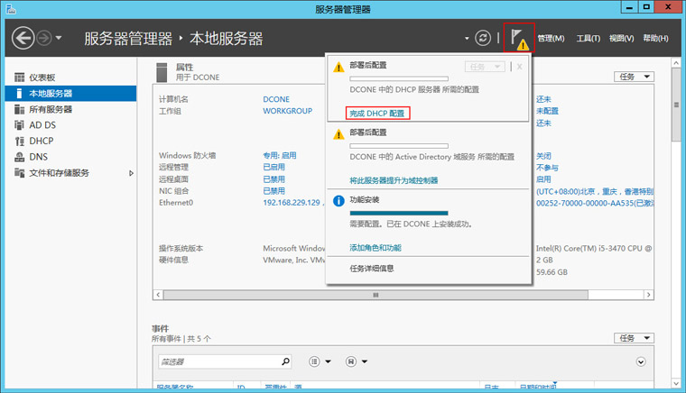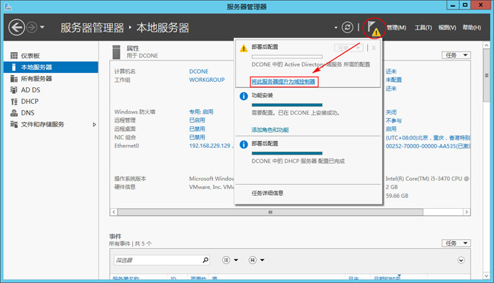 4.接下来需要把这台DCONE提升为域控制器,且完成DHCP的简单配置。