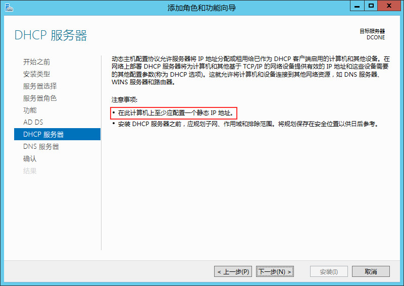 而把IP地址都更改为静态IP是为了在同时选取服务器角色的时候,不至于提示因为不是静态IP而无法建立DHCP和DNS。