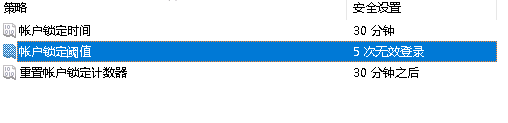 设置账号密码出错之后的锁定时间,需要先设置“账户锁定阀值”才能设置其他两项,参考设置如下: