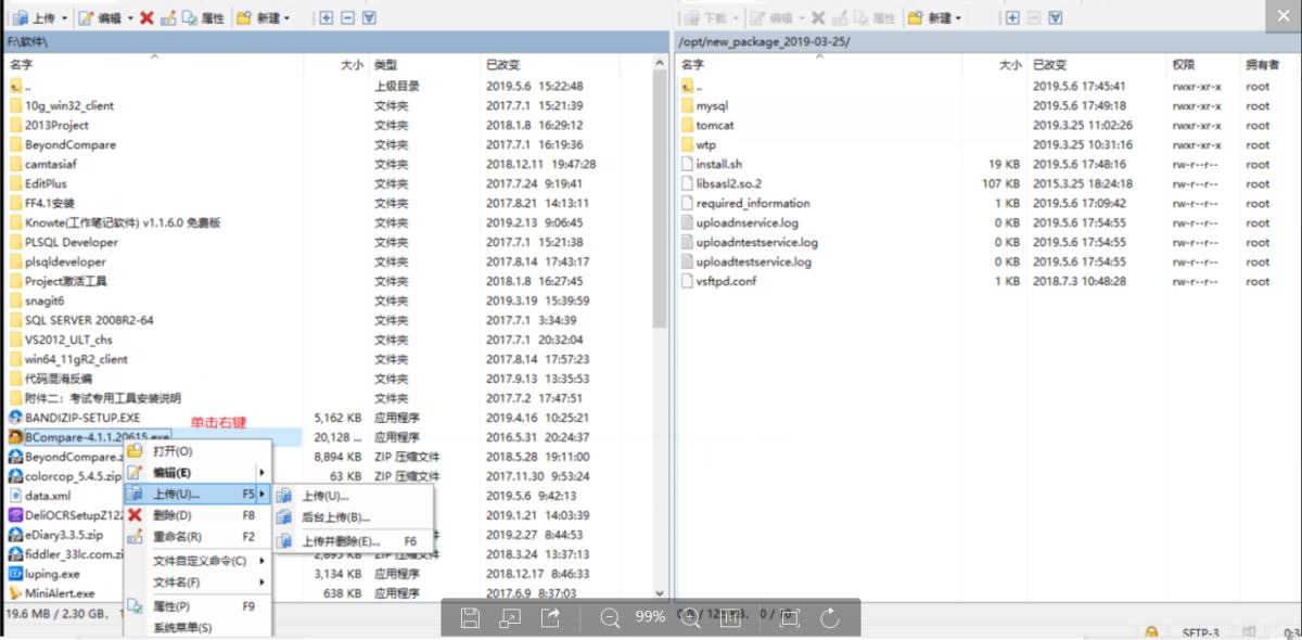 (2)、在左侧列表,选择要上传文件,单击右键选择上传即可