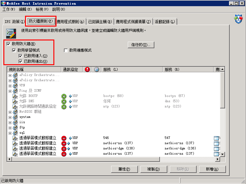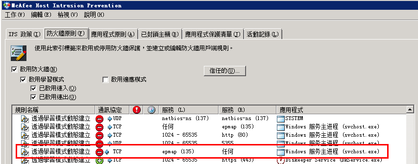 McAfee HIP防火墙可以直接监控服务器所有端口对内对外的所有访问,可以直接禁用指定软件使用某个端口,可即時防御和阻挡已知的、零时差、阻断服务 (DoS)、分散式阻断服务 (DDoS)、SYN Flood 与加密式攻击等。