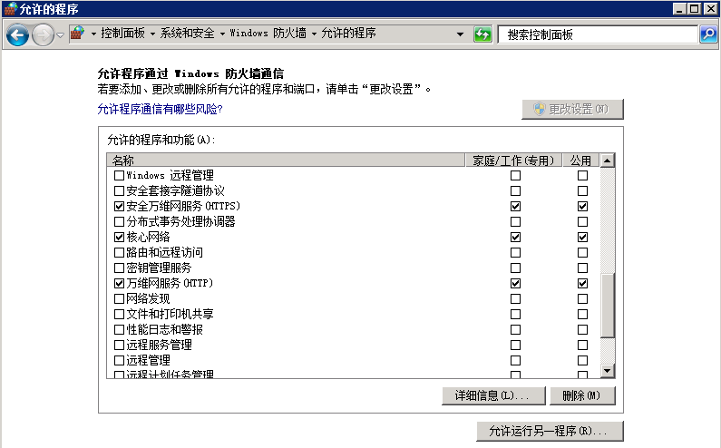 检查防火墙是否启用,并查看里面已设置好的规则里是否有新添加的项,判断这些项设置是否正常