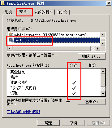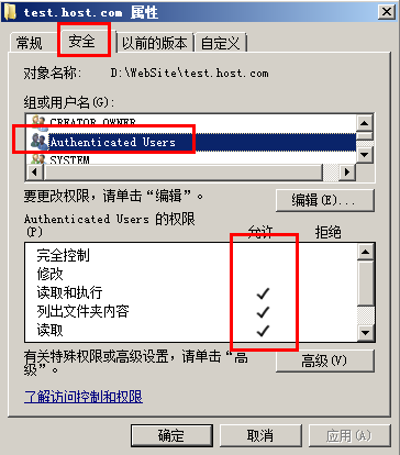 将网站的相关文件夹都按上面方法检查一下,另外对于JS、CSS、Images、配置、日志、HTML等不用执行的目录,虽然没有设置有写入权限,最好也将它们设置成无脚本执行限制