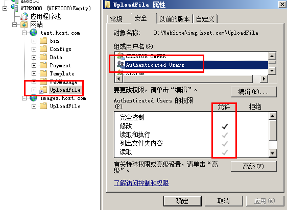 由于在新的虚拟机上测试并写本文档,IIS访问帐号权限使用的是应用程序池帐号,所以这里就不像上一遍文章那样有很多帐号