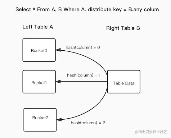 - 假如左表为 Colocate 的表,那么它每个分区的数据分布规则是确定的,Bucket Shuffle Join 能在Colocate 表上表现更好
