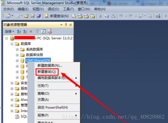 ****2.****打开数据库,右键某一个数据库,选择“新建查询(Q)”。
