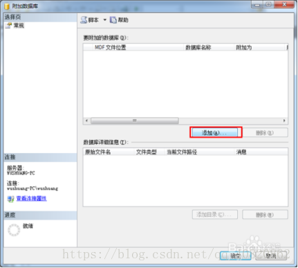 ****2.****在“附加数据库”界面,添加mdf文件即可,点击“确定”。