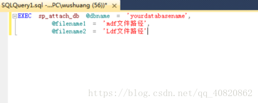 EXEC sp_attach_db @dbname = ‘你的数据库名’,