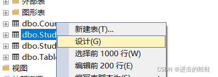a.在已创建Student表的前提下,点击Student表,右击,选择<设计>