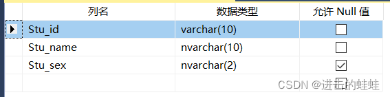 Stu_name nvarchar(10) not null, –学生姓名