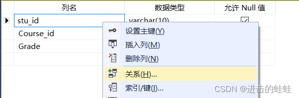 b.选择属性Stu_id,右击,选择<关系>