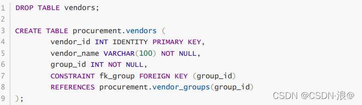 每个供应商属于供应商组,每个供应商组可能有零个或多个供应商。 vendor_groups 和 vendors 表之间的关系是一对多的。对于 vendors 表中的每一行,始终可以在 vendor_groups 表中找到相应的行。但是,如果使用当前表创建方式,可以在vendors 表中插入一行而不在 vendor_groups 表中显示相应 的行。 还可以删除 vendor_groups 表中的行,而无需更新或删除 vendors 表中导致 vendors 表中存在孤立的行。要强制执行 vendor_groups 和 vendors 表中的数据之间的链接,需要在 vendors 表中建立外键。要创建外键,请使用 FOREIGN KEY 约束。以下语句删除 vendors 表并使用 FOREIGN KEY 约束重新创建它: