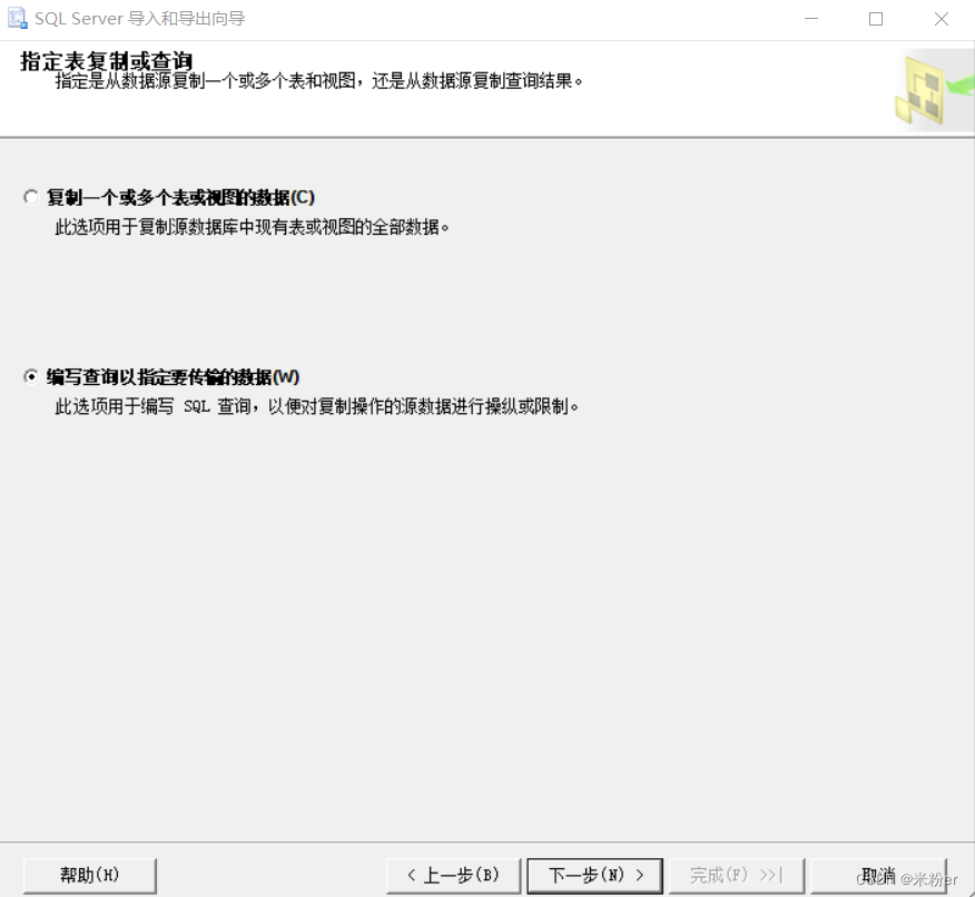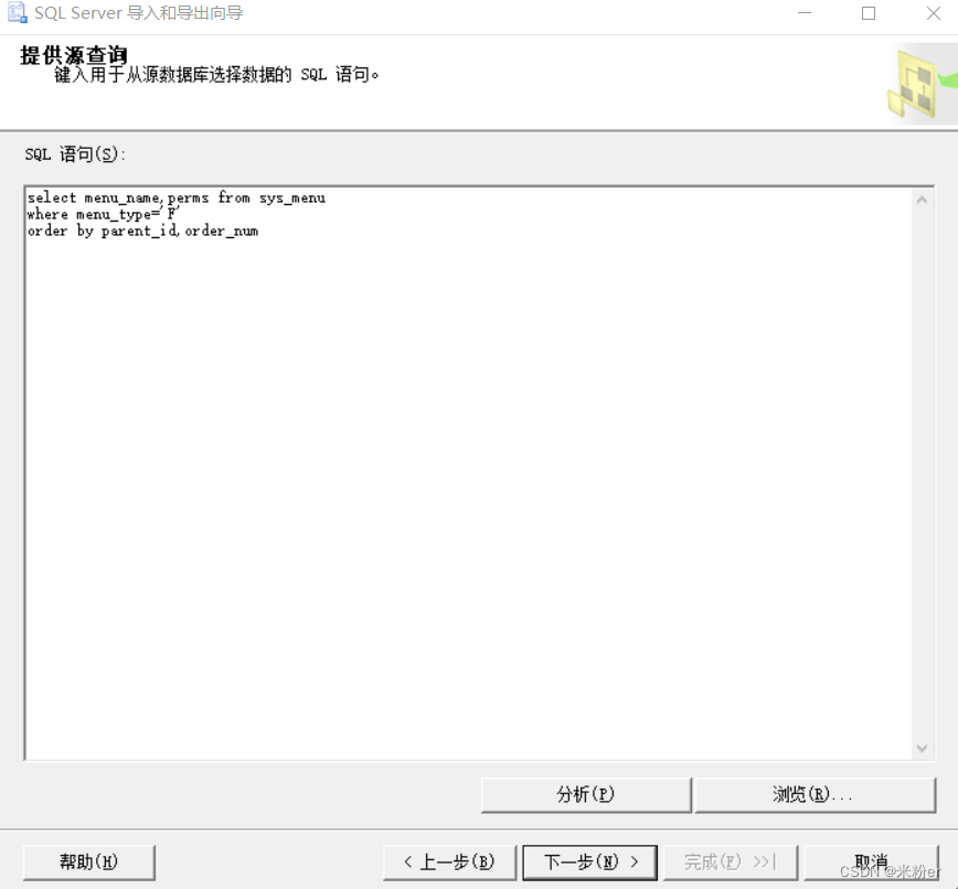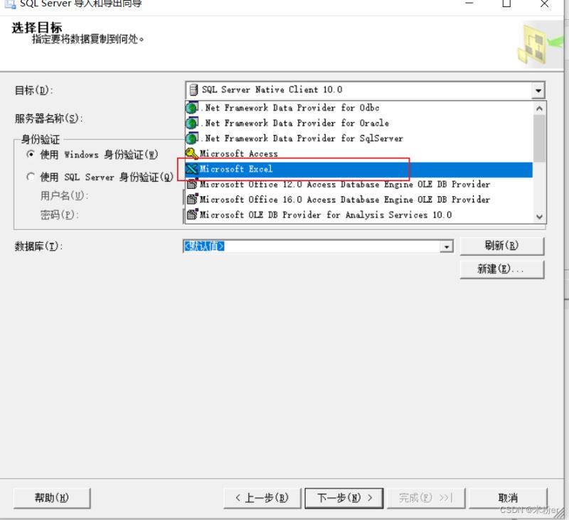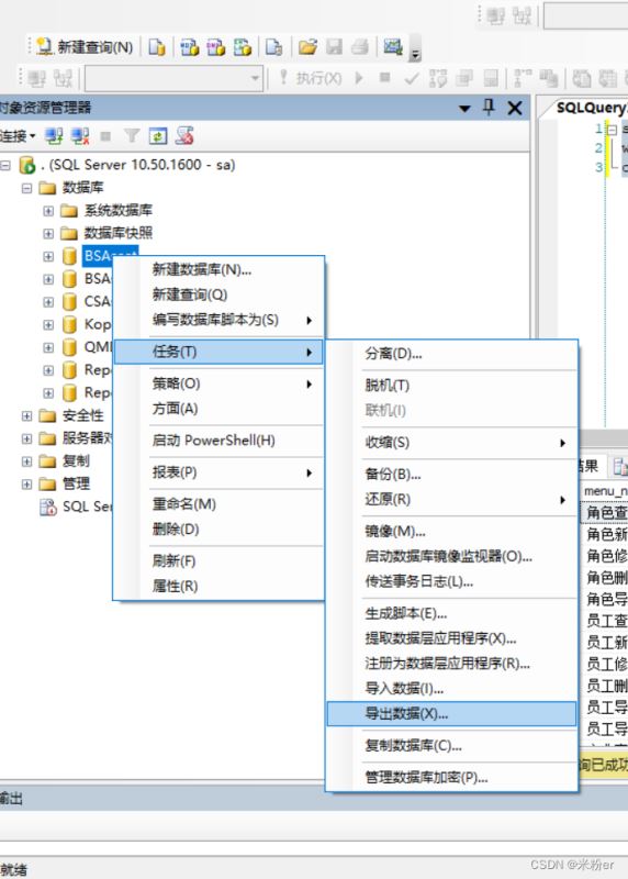 将查询的两列数据导出到excel中 1.选择数据库,右键任务→导出数据,打开导入导出向导,单击下一步