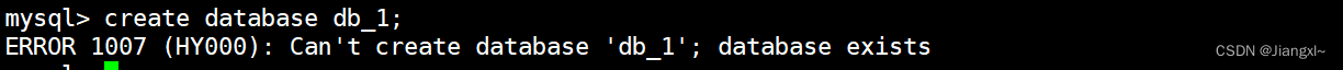 当我们创建数据库时,如果数据库已经存在,那么创建时就会报错,如下图所示: