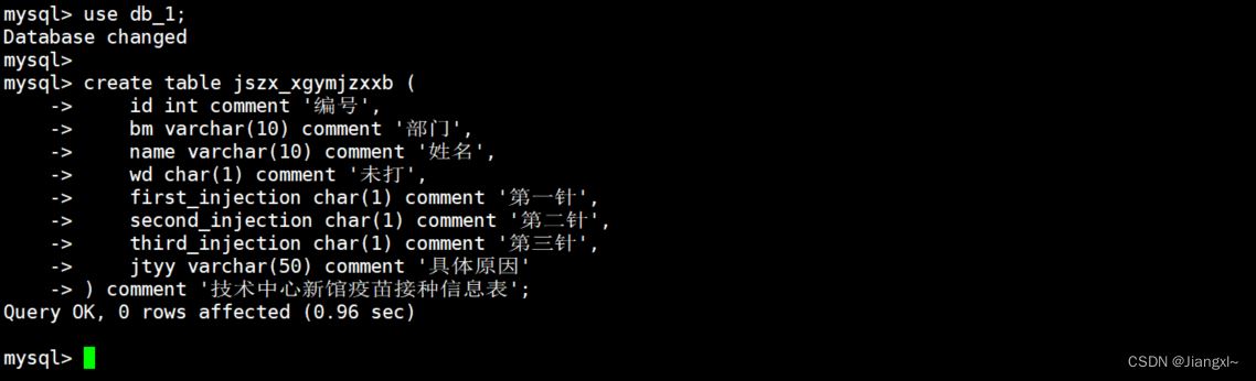 `second_injection` char(1) DEFAULT NULL COMMENT ‘第二针’,