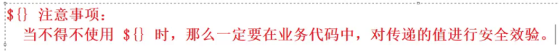 所以我们能不使用#{}就不使用${},因为存在SQL注入问题,如果必须使用${}则需要验证一下传递的参数是否合法,比如上面定义排序的sql,传递的参数只能是desc或者是asc,如果不是就不能执行这条SQL,防止SQL注入的发生。