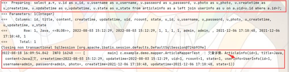 Articleinfo articleinfo = articleMapper.getArticleById(1);