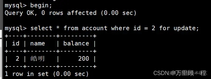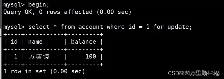 开启一个事务,并给查询记录加上X锁:此时针对查询的记录还加上了一个表级别的共享排它锁(IX)