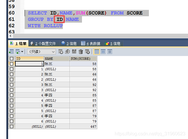 相信大家已经知道如何使用with rollup了,这个就是在group by分组之后,再次对聚合函数进行求和。