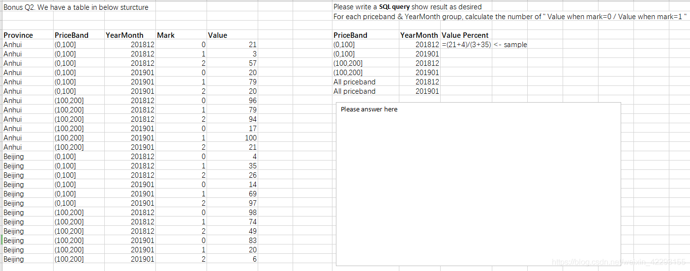 根据题目意思需要 求每个价格区间,时间的mark=0的和/mark=1的和