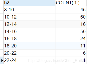 相信聪明的人已经感觉出来的,就是其实把我们取到的小时去除以时间段的区间取整数,那么就可以得到同一区间的数据,然后这个数字在乘回去我们的区间,就可以得到上限,在加区间就是下限,最终我们得到的SQL