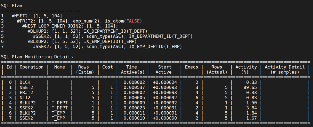 使用DBMS_SQLTUNE.REPORT_SQL_MONITOR方法可以查看上述执行号为1124的执行计划信息。