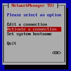 选中OK,一层一层的退回,选中Quit,会到命令行,再次使用nmtui命令,选择Activate a connection,进行连接激活,回车。
