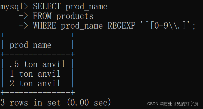 WHERE prod_name REGEXP ‘^[0-9\\.]’;