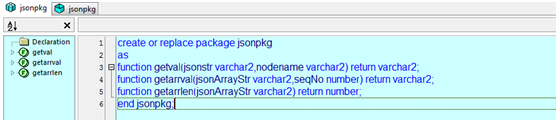 5、利用步骤4创建的class创建function(或procedure),在此为了使其跟目前数据库已存在的json处理方法区分开,我们创建一个package,如下: