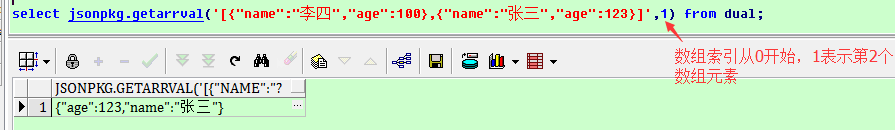 3、在PL/SQL中处理json数组时,由于json元素是无序且可以重复的,因此我们需要对数组成员进行索引并能够获取数组长度才可以对其循环处理。