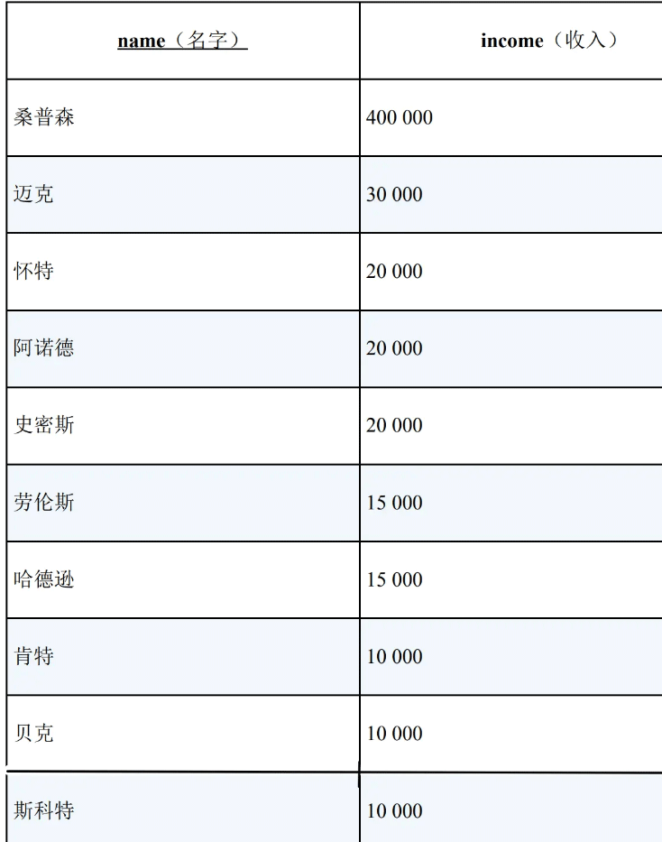 SELECT AVG(DISTINCT income) — 这里一定要去重后 再求平均