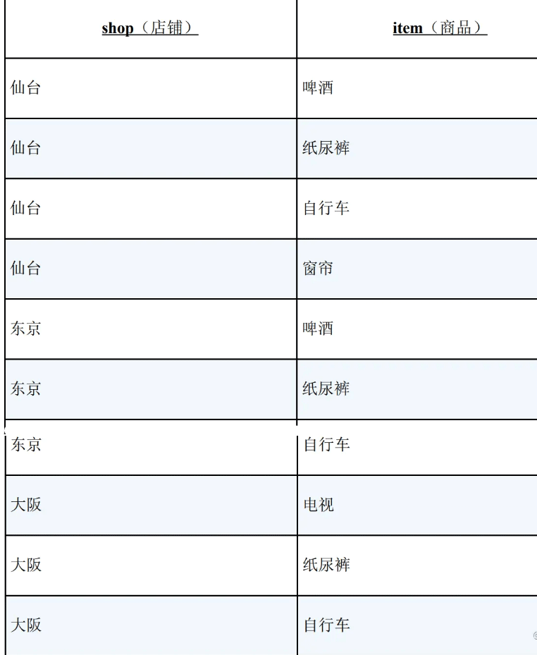 同样也可以写出 只包含 Items 中所有商品的店铺(东京店)