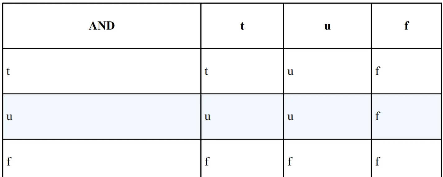 –4. 如果AND 运算里包含unknown,则结果不为true