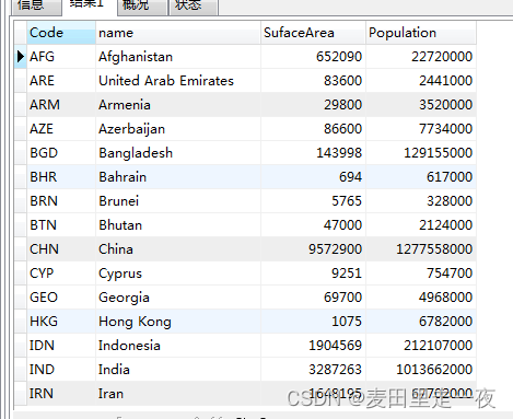 这里临时只取四个字段Code,Name,SufaceArea,Population,那么创建临时表的脚本如下: