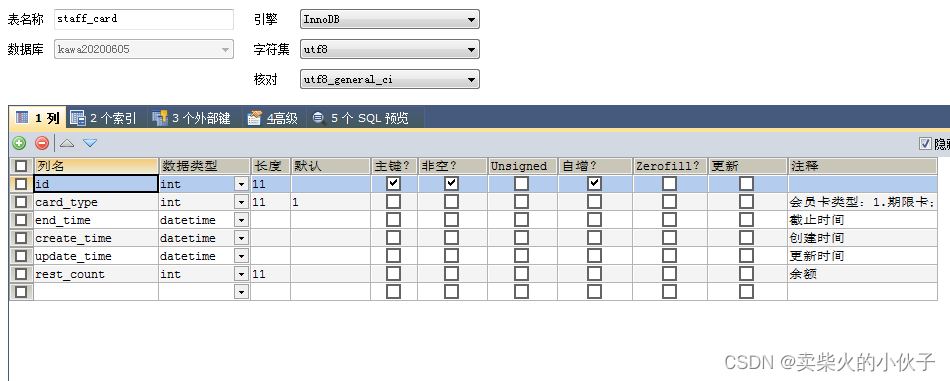 会员卡表信息: