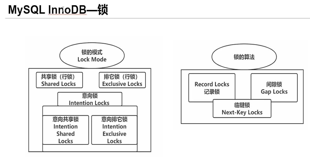 MySQL 5.5 版本之前,默认的存储引擎是MyISAM,5.5之后默认引擎是Innodb。Innodb支持事务,包括:行锁/表锁,MyISAM不支持。 意向锁 意向共享锁/读锁(表锁类型,无法手动创建),mysql 中语法: lock in share mode意向排它锁/写锁(表锁类型,无法手动创建),mysql 中语法: for update