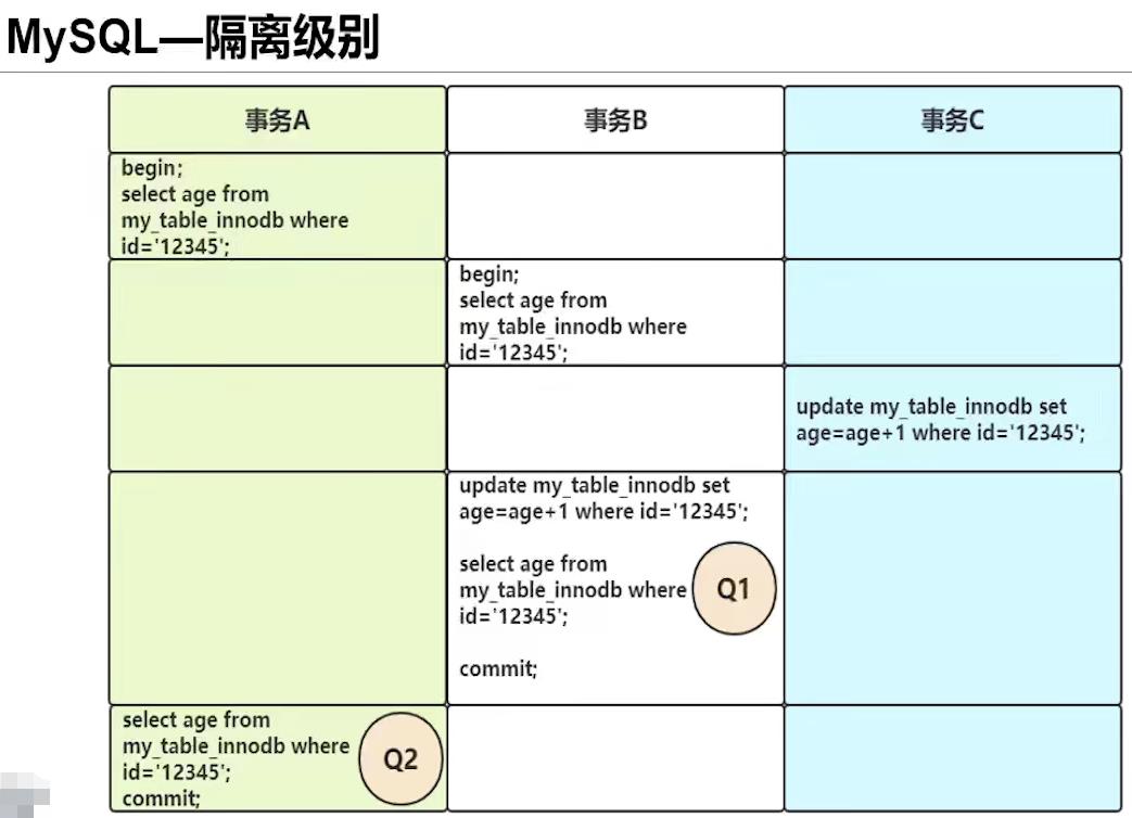 问题:在 RR-可重复读 的默认隔离级别下,假设起始的age为18,那么Q1和Q2对应的age分别是多少呢?