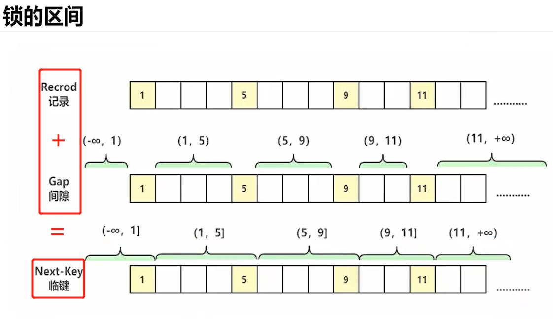 - 介绍:临键锁 = 记录锁 + 间隙锁,是 RR 可重复读-隔离级别下独有的,