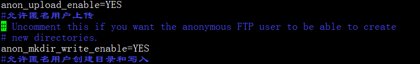 3.如果想进行匿名操作,首先确保,vsftpd.conf 配置文件中的 anonymous_enable=YES,
