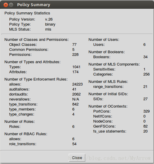 apol(即analyze policy【分析策略】)工具是一个成熟的SELinux策略分析工具,它位于setools工具包中。使用它打开policy.xx文件即可分析所有的相关策略。xx为策略编译器(checkpolicy)的版本号。