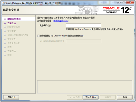 1、电子邮箱可以不填写,去掉接收安全更新的勾,点击下一步