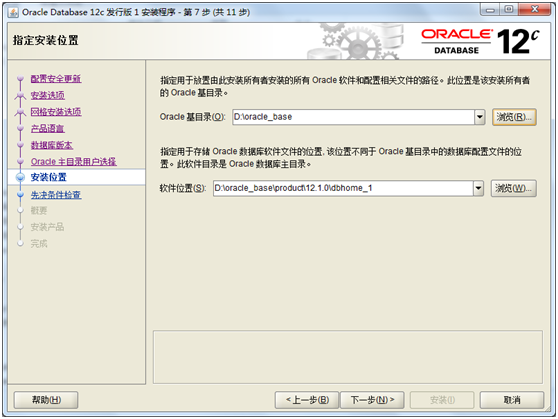 7、选择安装路径,文件名oracle_base,最好不要用有中文的路径