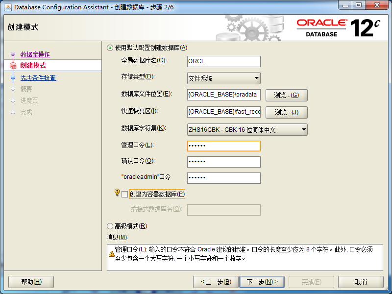 1、数据库名称建议使用ORCL(类似Java中驼峰式命名变量,只是一种习惯)