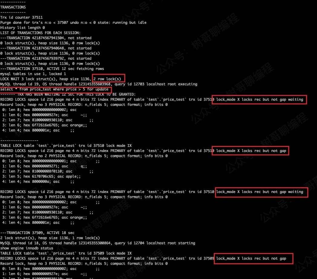 在 Innodb 存储引擎中,我们可以通过下面的命令来查询锁的情况。