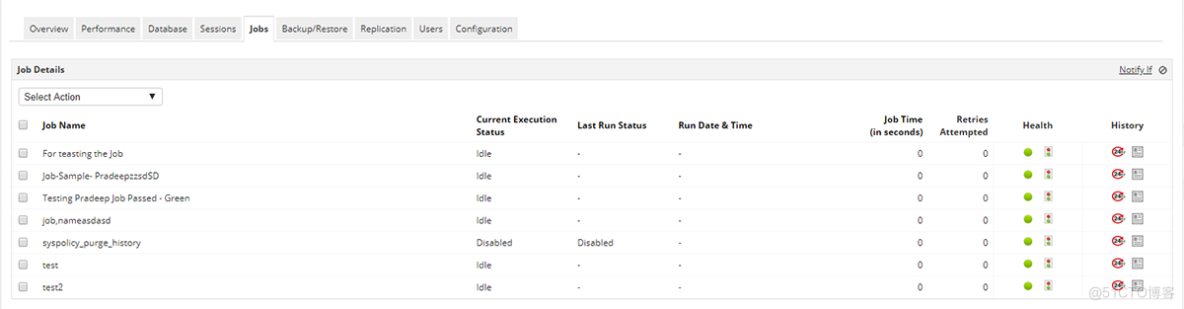 Applications Manager的SQL监视器帮助您跟踪有问题的SQL会话直到查询,识别资源密集会话,并排除由于会话消耗过多资源或会话过载而出现的任何问题。SQL服务器性能监控允许您跟踪计划运行的作业、在当前会话期间运行的作业的最后结果,并查明各个作业的当前状态。