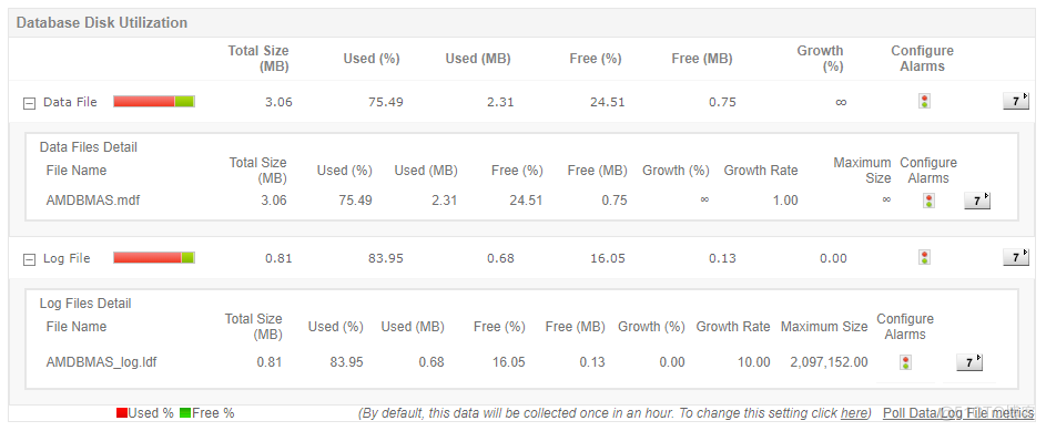 在SQL Server数据库性能监视方面,跟踪磁盘空间利用率仍然是DB管理员面临的最大挑战之一。磁盘增长不仅跟踪重要知道多少内存负载服务器下,SQL是同样重要的监视测量磁盘卷上的空闲空间组成各自的数据库日志文件,以确保有足够的空间数据增长的内部数据库。应用程序管理器的Microsoft SQL Server性能监控软件跟踪数据文件和日志文件的所有资源使用统计数据以及事务和日志刷新细节,允许DB管理员有效地调节和优化SQL Server的性能。