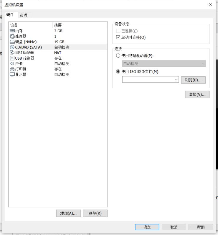 6. 这一步可以自定义一些硬件参数,包括设置启动软盘,一定要设置,选择使用ISO映像文件,浏览到你存放ISO文件就行。