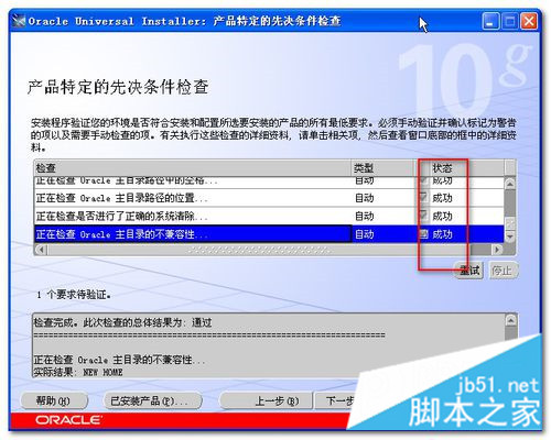 查看检查结果,状态为成功即可点击【下一步】进行安装。